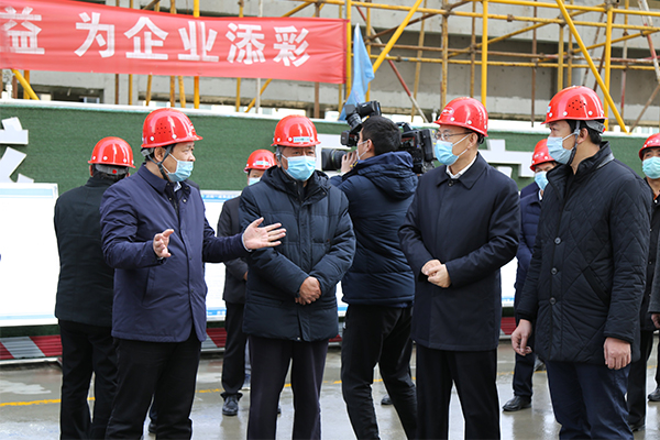 2月19日上午,濟南市副市長王京文等一行來到我公司中海華山西片區F地塊2標段項目調研指導工地復工和疫情防控情況。公司黨委書記、董事長孫光文及項目負責人等陪同調研。